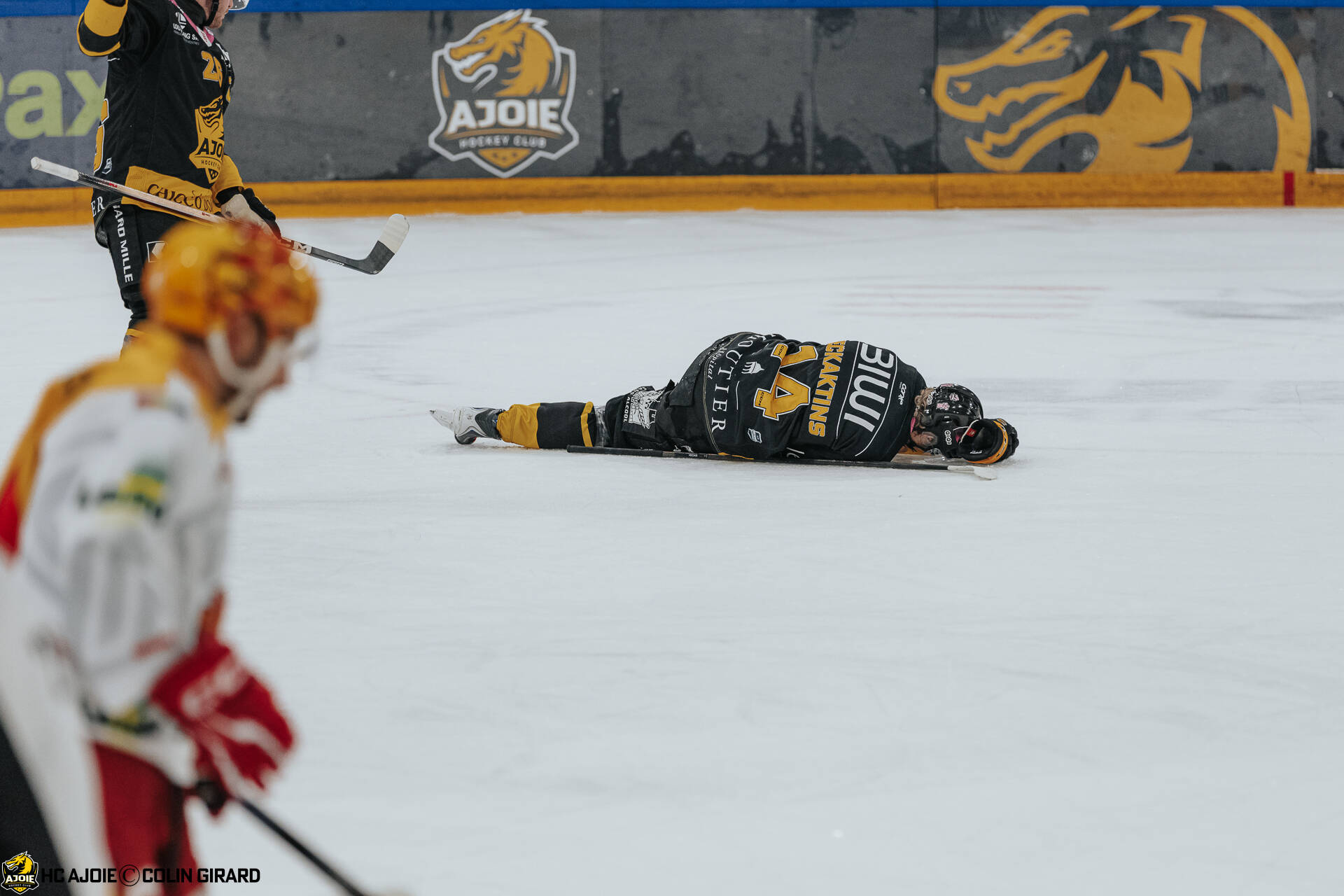 - 90 Fischer Jannik, C.G Photographie, Club National League, Colin Girard, HC Ajoie, HCA, HCA Vs EHCB, NL, National League, RAIFFEISEN ARENA, Saison 2025-26, Saison25-26, blessure, hockey