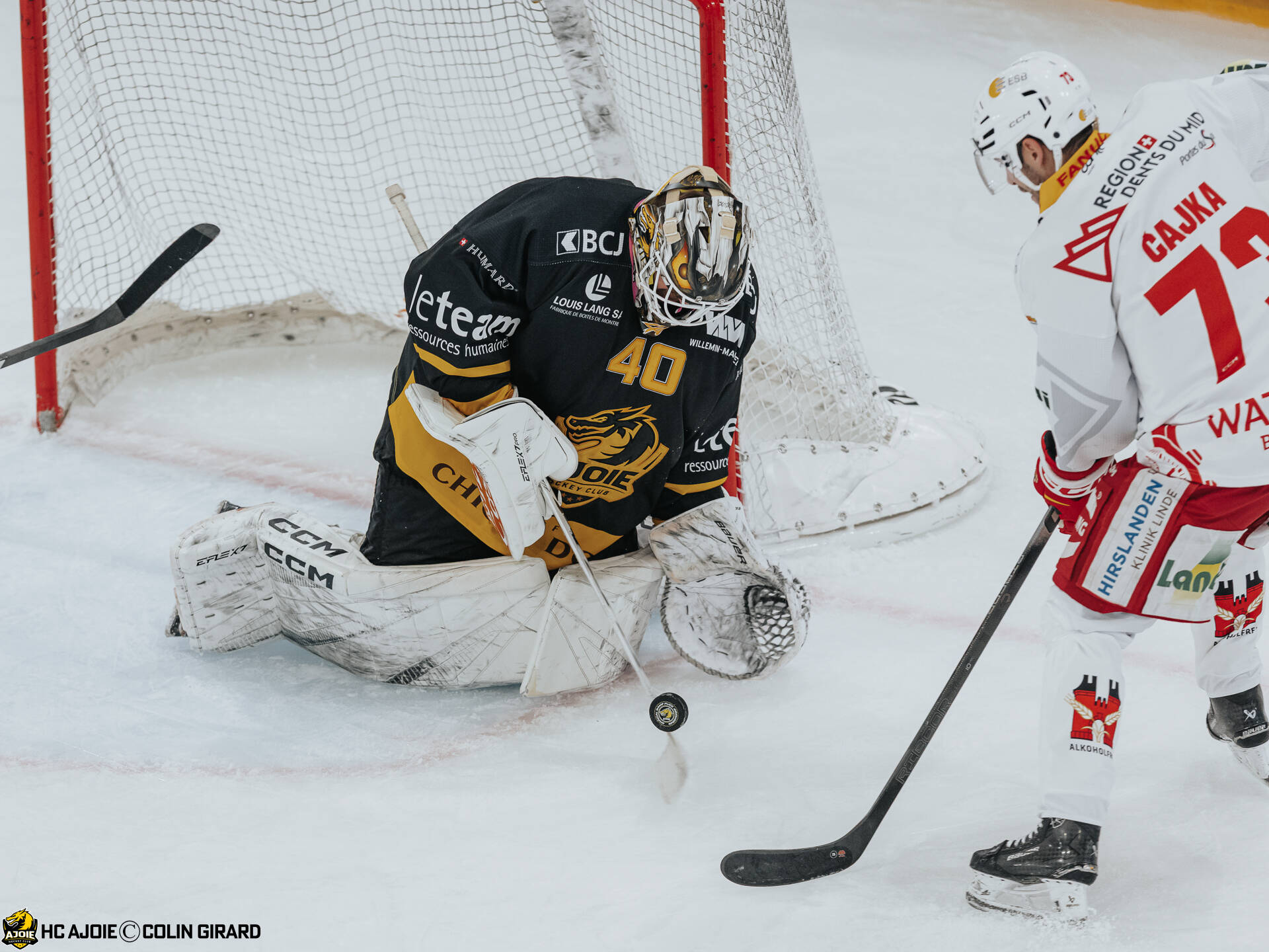 - 40 Ciaccio Damiano, C.G Photographie, Club National League, Colin Girard, Gardien, HC Ajoie, HCA, HCA Vs EHCB, NL, National League, RAIFFEISEN ARENA, Saison 2025-26, Saison25-26, arrêt, hockey
