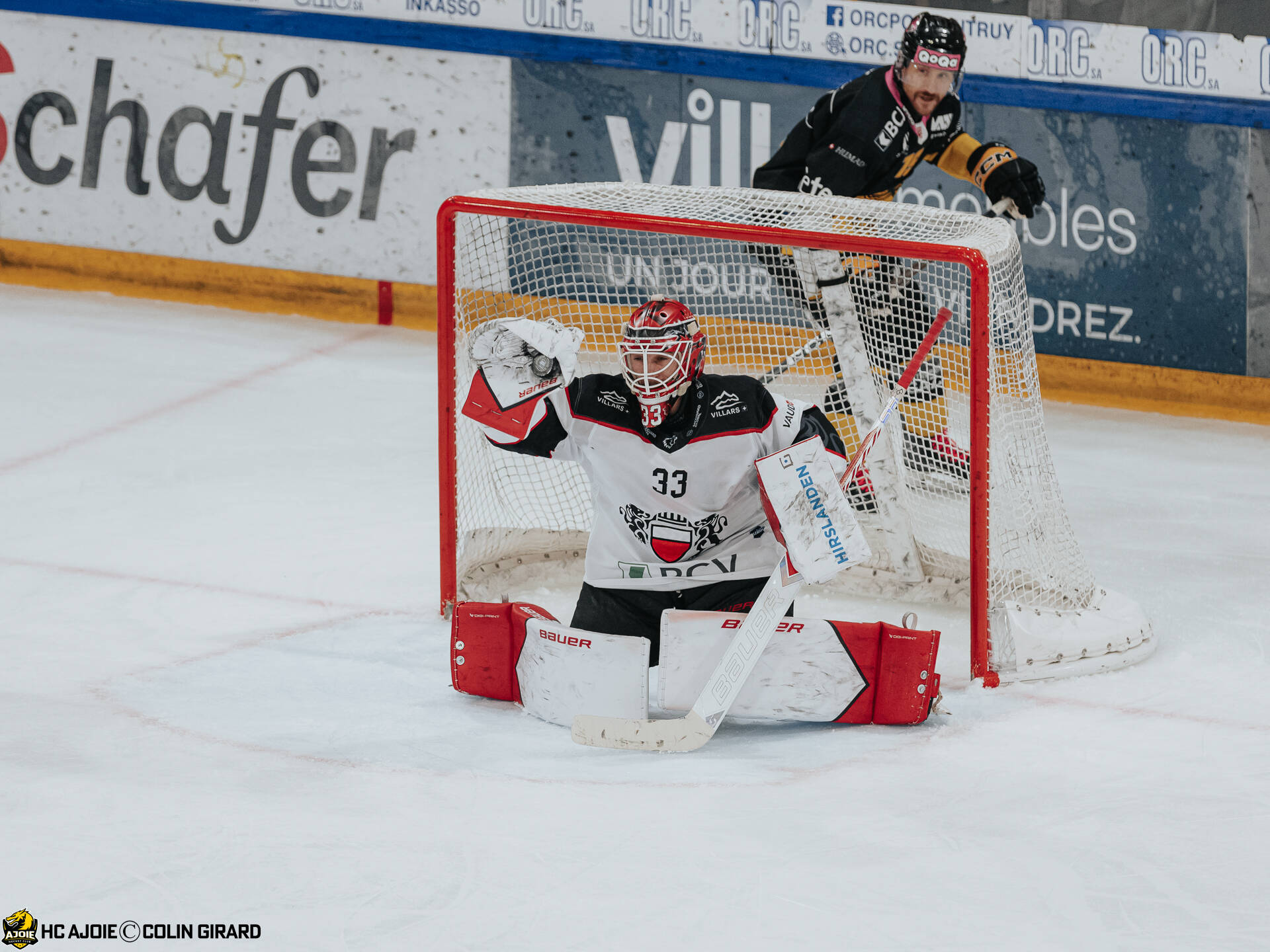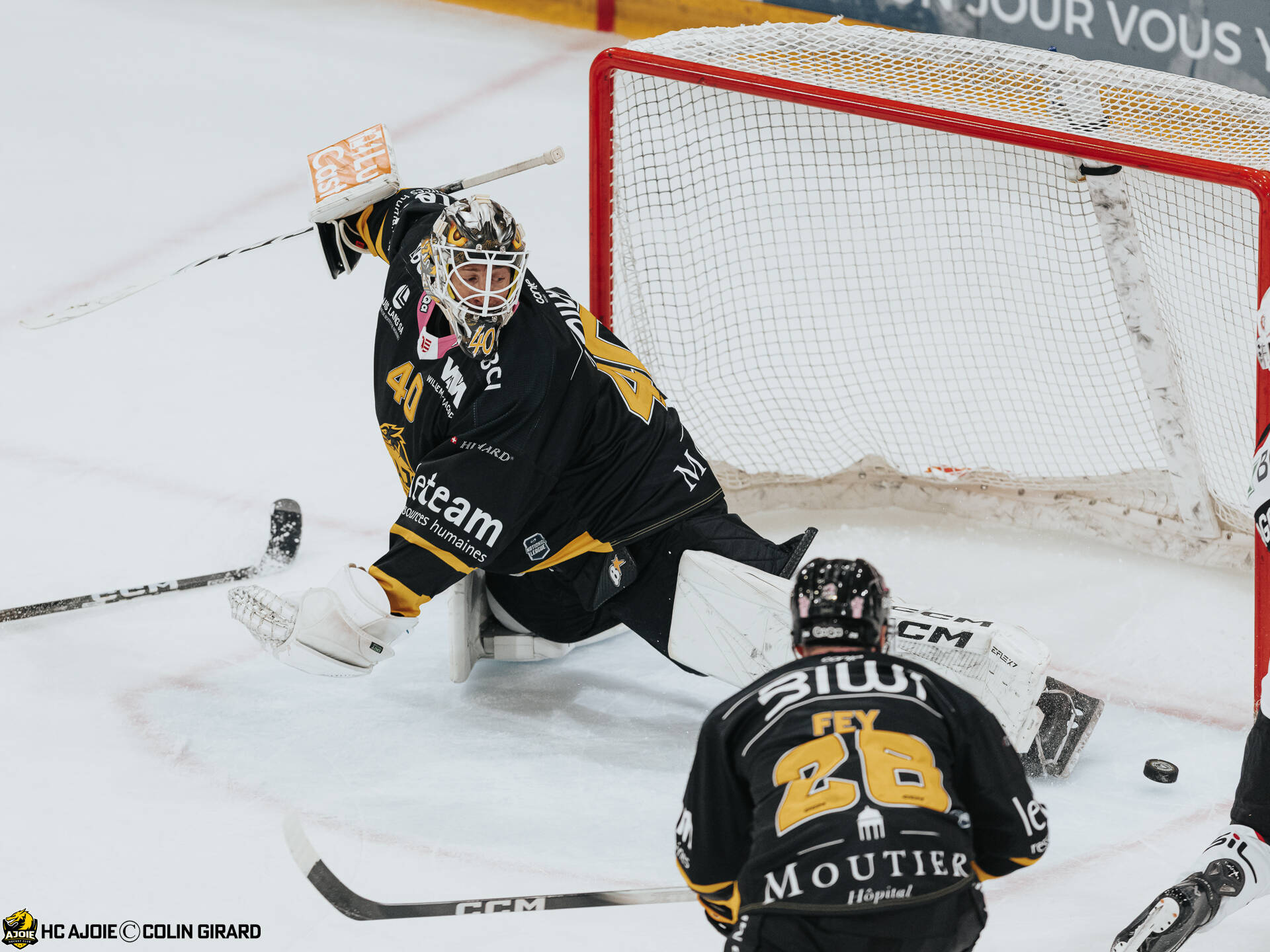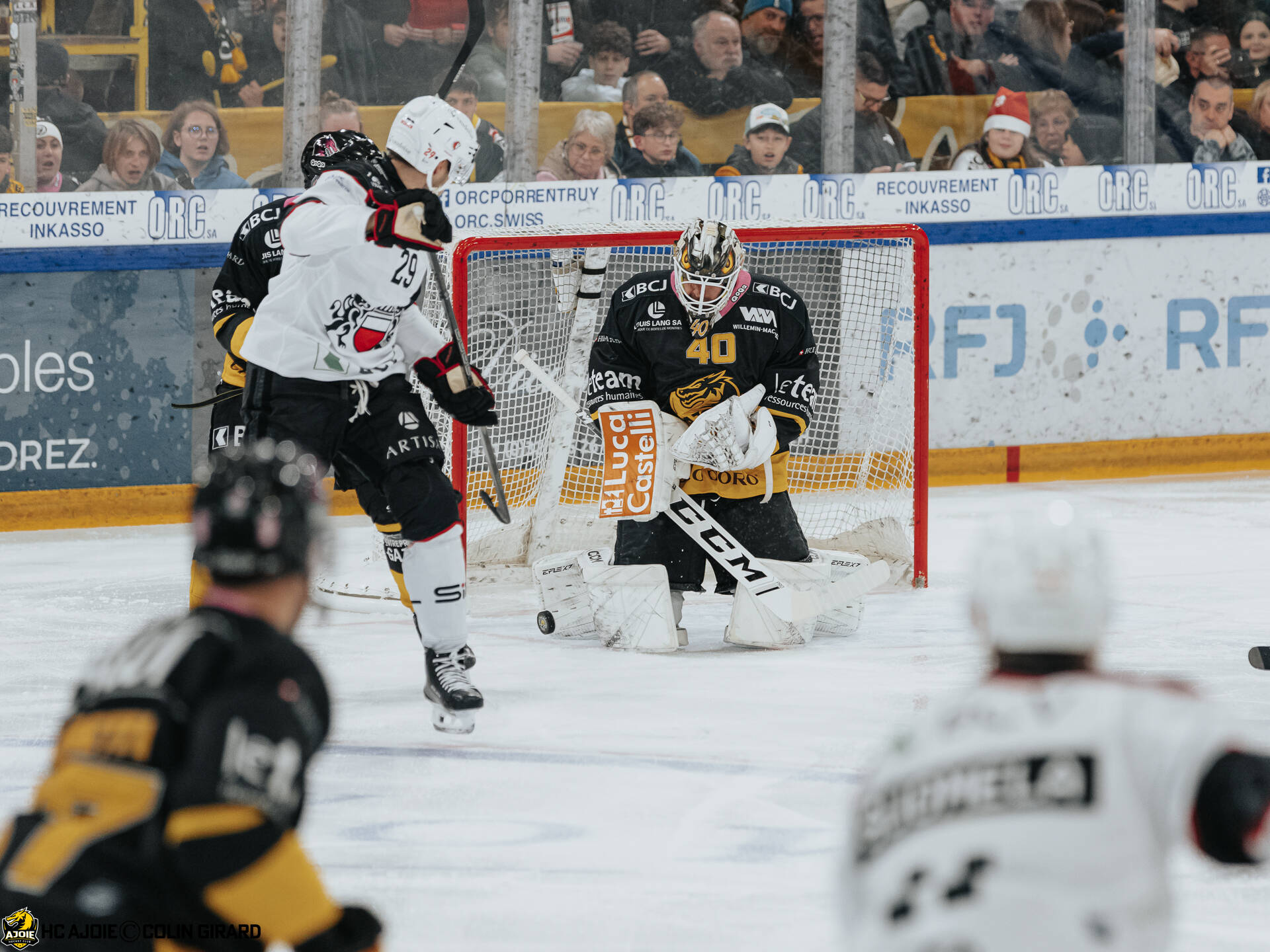 - 40 Ciaccio Damiano, C.G Photographie, Club National League, Colin Girard, Gardien, HC Ajoie, HCA, HCA Vs LHC, NL, National League, RAIFFEISEN ARENA, Saison 2025-26, Saison25-26, arrêt, big save, hockey