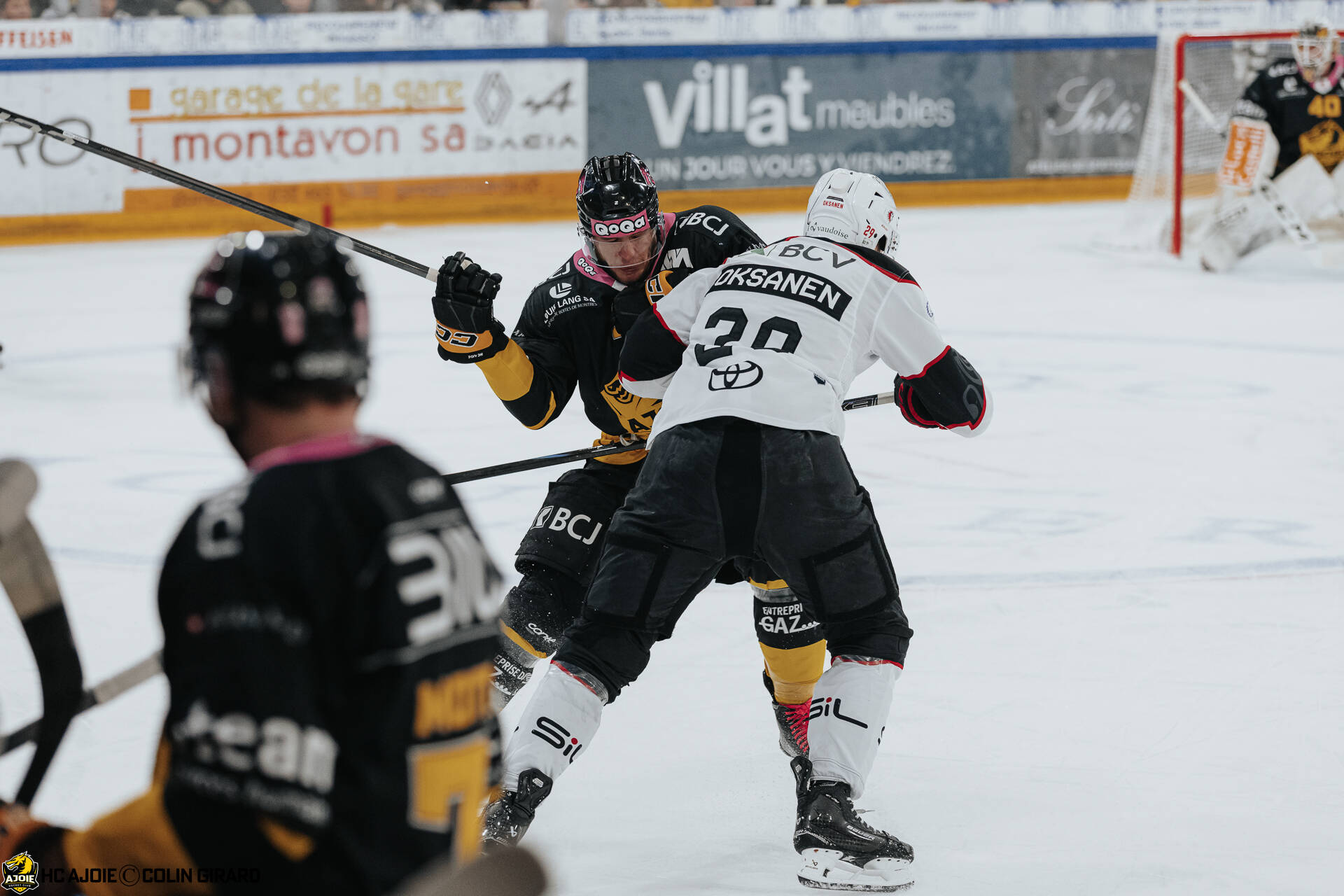 - 2 Pilet Valentin, C.G Photographie, Club National League, Colin Girard, HC Ajoie, HCA, HCA Vs LHC, NL, National League, RAIFFEISEN ARENA, Saison 2025-26, Saison25-26, charge, hockey
