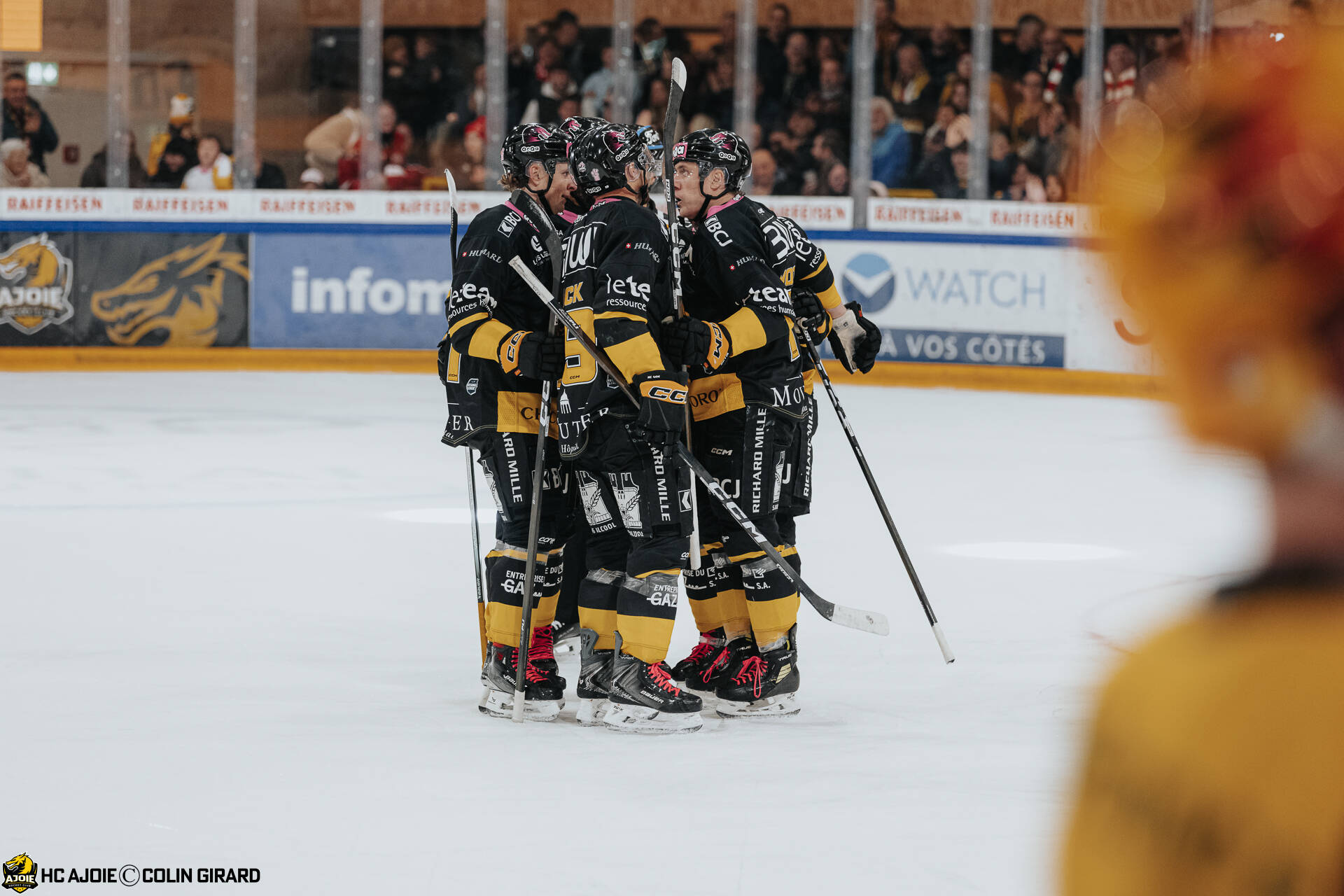 - But, C.G Photographie, Club National League, Colin Girard, HC Ajoie, HCA, HCA Vs LHC, NL, National League, RAIFFEISEN ARENA, Saison25-26, célébration, hockey