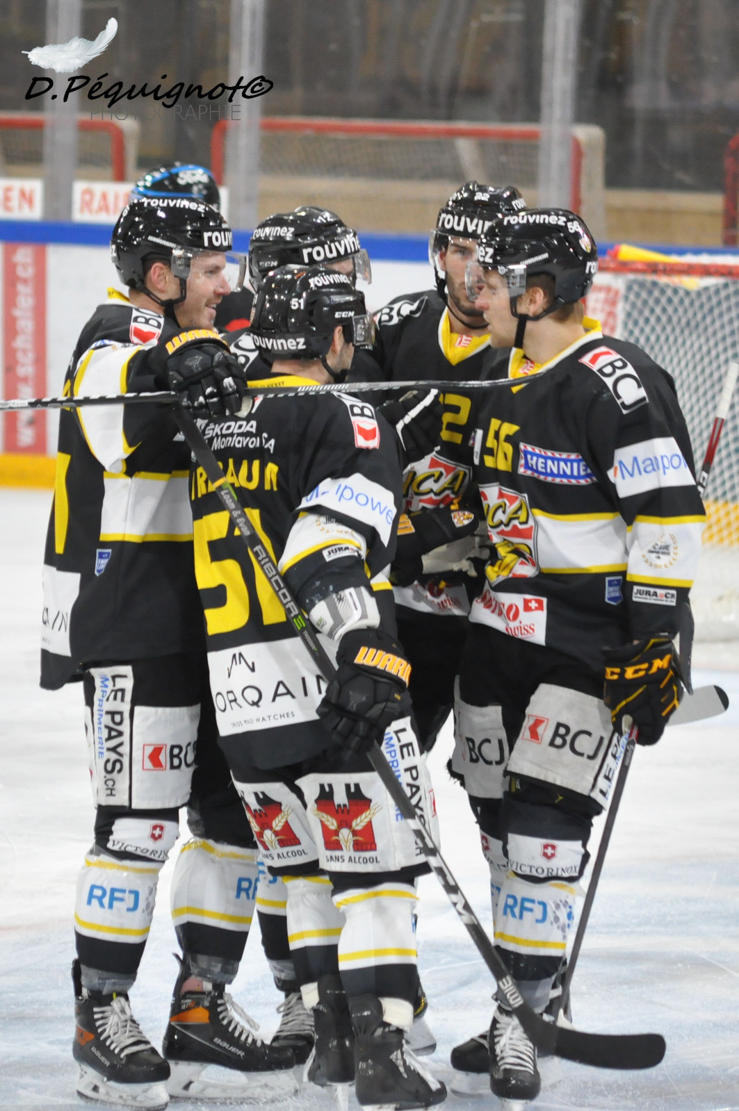 Le score s’est finalement débloqué lors du deuxième tiers. Alors qu’Ajoie maîtrisait le puck, ce dernier est allé s’échouer contre le poteau, permettant à Viège d’effectuer une contre-attaque. Pris de cours, les Jaunes & Noirs n’ont pas pu intercepter Hofstetter, qui a pu offrir un point à son équipe après avoir trompé la vigilance de Wolf (32’16’’). Seulement voilà, le coup d’envoi suivant, le puck a fait le chemin inverse : poteau pour Viège, contre-attaque menée par Hazen, Pouilly et Devos, et le HCA a regagné son but d’écart (32’42’’). Mieux encore, car une minute plus tard, sur un jeu de passes parfait, Schnegg, Birbaum et Eigenmann ont triplé la mise (34’04’’).