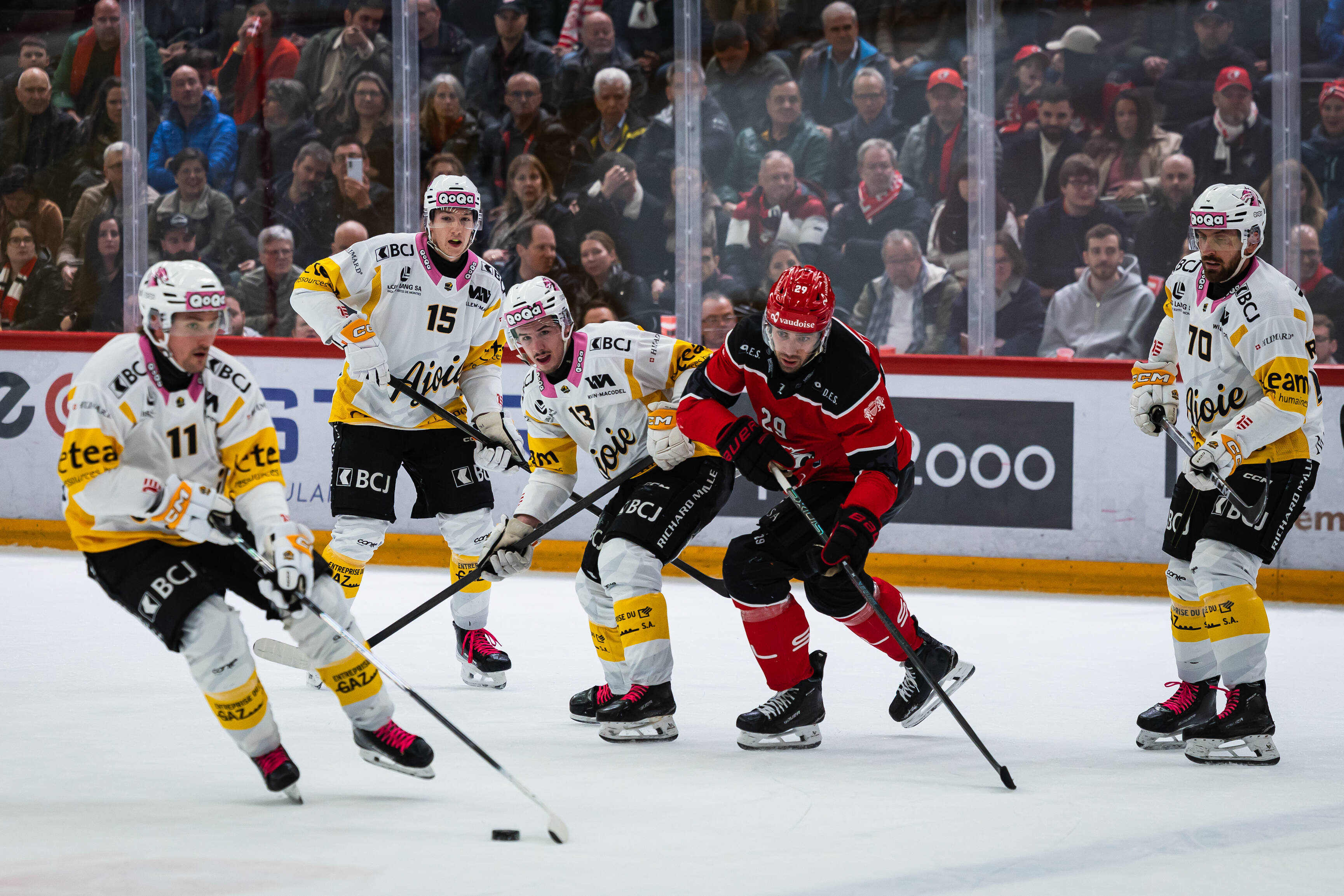 Dans une patinoire garnie de 9600 spectateurs qui avaient pu assister avant match à un show de Lord Campbell alias Kiki Crétin, les hommes de Greg Ireland ont tenu la dragée haute aux Lausannois. Bien que ce soit le LHC qui ouvre la marque à la 23e minute par Czarnik, les Ajoulots ont pu profiter d'une pénalité de cinq minutes contre Sansonnens qui était renvoyé aux vestiaires après une charge de Sopa pour égaliser d'un puissant tir de Mottet. Czarnik redonnait une longueur d'avance à ses couleurs mais Bellemare et Wick jouaient un sale tour à leurs hôtes en subtilisant le puck dans leur zone pour que ce dernier ne ramène Ajoie à deux partout.